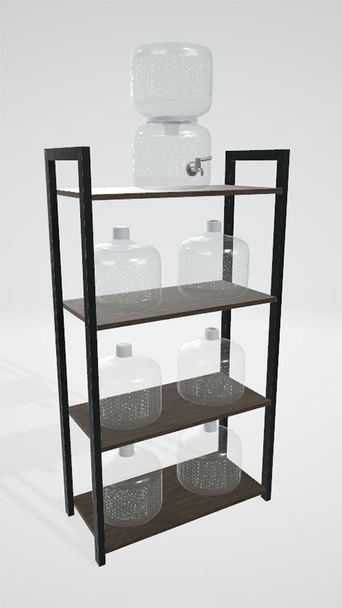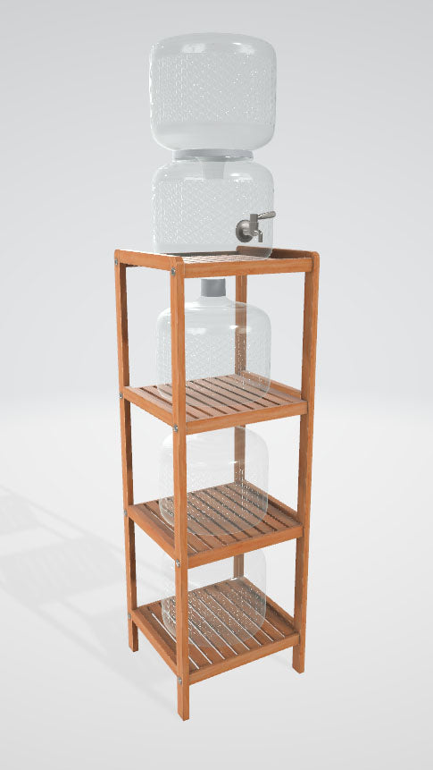 We recommend one of our elegant glass dispensers for easy pouring. Our shelves also offer a convenient storage solution. View one of the 3D options below to see how each setup would look in your space using augmented reality on a capable device.